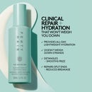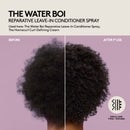 Image 1 - An advertisement shows a before and after comparison of dark, curly hair, with the after side appearing more defined and less frizzy, alongside text that reads THE WATER BOI REPARATIVE LEAVE-IN CONDITIONER SPRAY, Used here: The Water Boi Reparative Leave-In Conditioner Spray, The Homecurl Curl-Defining Cream, BEFORE, AFTER 1ST USE, and FOR ALL HAIR TYPES + TEXTURES. Image 2 - A split-screen image shows a persons back with long hair, on the left side the hair is frizzy and dry labeled Before, and on the right side the hair is smooth and shiny labeled After 1st Use, with text above reading THE WATER BOI REPARATIVE LEAVE-IN CONDITIONER SPRAY, Used here: The Rich One Moisture Repair Shampoo, The Water Boi Reparative Leave-In Conditioner Spray, and a circle icon at the bottom right with wavy lines and text that says FOR ALL HAIR TYPES + TEXTURES. Image 3 - Before and after image displaying curly hair, with the left side showing frizzy, undefined brown hair and the right side showing moisturized, well-defined brown curls after first use, alongside the product name and description THE WATER BOI REPARATIVE LEAVE-IN CONDITIONER SPRAY, Used here: The Water Boi Reparative Leave-In Conditioner Spray, The Homecurl Curl-Defining Cream, with labels BEFORE and AFTER 1ST USE, and an icon stating FOR ALL HAIR TYPES + TEXTURES. Image 4 - A split image shows a persons back from the shoulders down, with the left side labeled BEFORE displaying frizzy blonde hair and the right side labeled AFTER 1ST USE showing smoother, shinier blonde hair, with text at the top reading THE WATER BOI REPARATIVE LEAVE-IN CONDITIONER SPRAY and Used here: The Water Boi Reparative Leave-In Conditioner Spray, and a circular icon in the bottom right corner with hair texture patterns and the text FOR ALL HAIR TYPES + TEXTURES. Image 5 - A grid displays four different hair textures including straight brown, tightly curled dark brown, coily dark brown, and wavy black hair, with the text Lightweight Hydration + Clinical Repair For All Perfect for Dry, Damaged, Tangled + Frizzy Hair. Image 6 - A light green Fenty Hair spray bottle emits a fine mist against a matching background, with visible text reading FENTY HAIR, 100% agree this leave-in conditioner: Boosts hydration, Absorbs into hair easily. 96% agree this leave-in conditioner: Feels lightweight, Makes hair look shiny + smoother. 90% agree this leave-in conditioner: Instantly detangles. *IN A 7-DAY CLINICAL STUDY WITH 30 PEOPLE ON DRY HAIR ^IN A 1-DAY CLINICAL STUDY WITH 30 PEOPLE ON WET HAIR. Image 7 - A light green Fenty Hair spray bottle labeled Fenty Hair, Supplement One, The Water Boi reparative leave-in conditioner spray, vaporisateur après-shampooing réparateur sans rinçage, 200ML / 6.7FL. OZ. is displayed next to text listing product benefits: Clinical Repair + Hydration That Wont Weigh You Down, Provides All-Day, Lightweight Hydration, Doesnt Weigh Down Strands, Detangles + Smooths Frizz, Repairs Split Ends + Reduces Breakage. Image 8 - An overhead shot on a purple background shows a partially open pink tub labeled Fenty Hair The Homecurl Reparative moisture styling cream and a teal spray bottle labeled Fenty Hair The Water Boi Reparative leave-in conditioner spray réparateur après-shampooing réparateur sans rinçage, both 200ML / 6.7FL. OZ. A white creamy product is smeared near the tub, and white droplets are near the spray bottle. Text on the image reads Curlfriends That Stay Winning, Your Duo For Hydrated, Juicy Curls, Step 1: Prep With The Water Boi For lightweight hydration, easy detangling + always-on repair, and Step 2: Style With The Homecurl For defined, touchable coils, curls + waves.