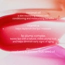 image 1, available in 5 juicy shades. image 2, coconut oil = a skin nourishing extract with conditioning and moisturising benefits. vitamin e = helps replenish the lips moisture. lip plump complex = leaves lips with a natural, visibly plump look and helps diminish early signs of aging. also contains raspberry and passion fruit seed oil. image 3, ultra soft doe foot applicator. non sticky smooth oil, glides on lips effortlessly. hydrates and softens lips. image 4, 5 stars, best lip oil on the market.