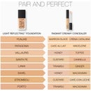 Image 4 - An image showing two vertical columns of NARS makeup product names, with LIGHT REFLECTING™ FOUNDATION on the left featuring shade names like Siberia and Gobi, and RADIANT CREAMY CONCEALER on the right listing shades like Affogato and Chantilly, with the title at the top reading PAIR AND PERFECT.