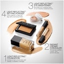 Image 3 - Image features various NARS makeup products arranged artistically, including a foundation, concealer, eye brightener, and setting powder, with visible text labeling each product: 1 LIGHT REFLECTING FOUNDATION Enhance skins luminosity with flexible, buildable coverage, 2 RADIANT CREAMY CONCEALER Effortlessly brighten, correct, and perfect all over, 3 LIGHT REFLECTING EYE BRIGHTENER Illuminate the undereye area for an instantly awakened look, 4 LIGHT REFLECTING SETTING POWDER Lock makeup in place all day with a luminous finish.