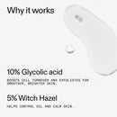 Formulated with a 10% concentration of glycolic acid, the toner lifts dead skin cells from the skin without stripping away moisture, encouraging a smoother look. Witch hazel features nourishing properties, working to remove excess oil and soothe the appearance of blemishes. Promote a brighter, visibly refined complexion with this toner.