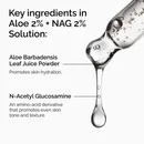 Aloe 2% + NAG 2% Solution هو سيروم خفيف القوام بتركيبة مهدئة للبشرة المعرضة للإصابة بالبثور. يحسن مظهر آثار البثور بفضل احتوائه على مكونات تستهدف مظهر وملمس البشرة غير موحدة اللون، ويساعد أيضاً في تقليص حجم المسام، وتقوية حاجز الترطيب الطبيعي بالبشرة.